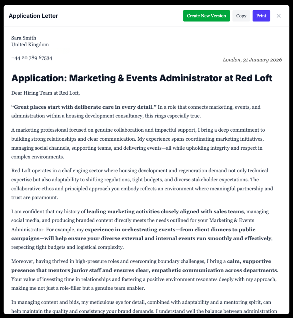 Whether you prefer professional, casual, creative or inspirational language, UniqU crafts cover documents that highlight your strengths and speak to the real pain points of the role. It’s fast, precise, and built to get you noticed.