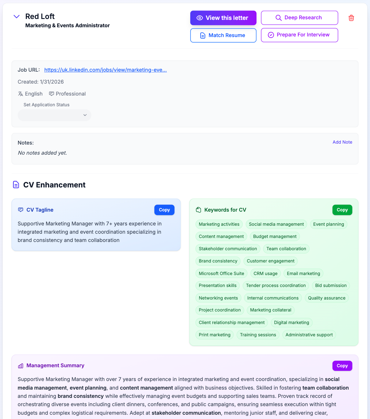 Paste a job link – or select from UniqU’s job board – and generate everything instantly