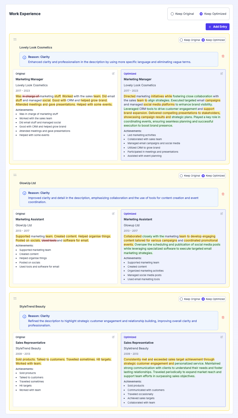 Edit or tweak your optimized resume if necessary. You remain in control.